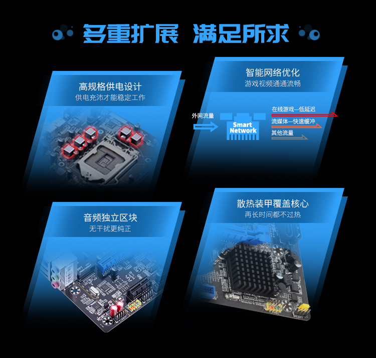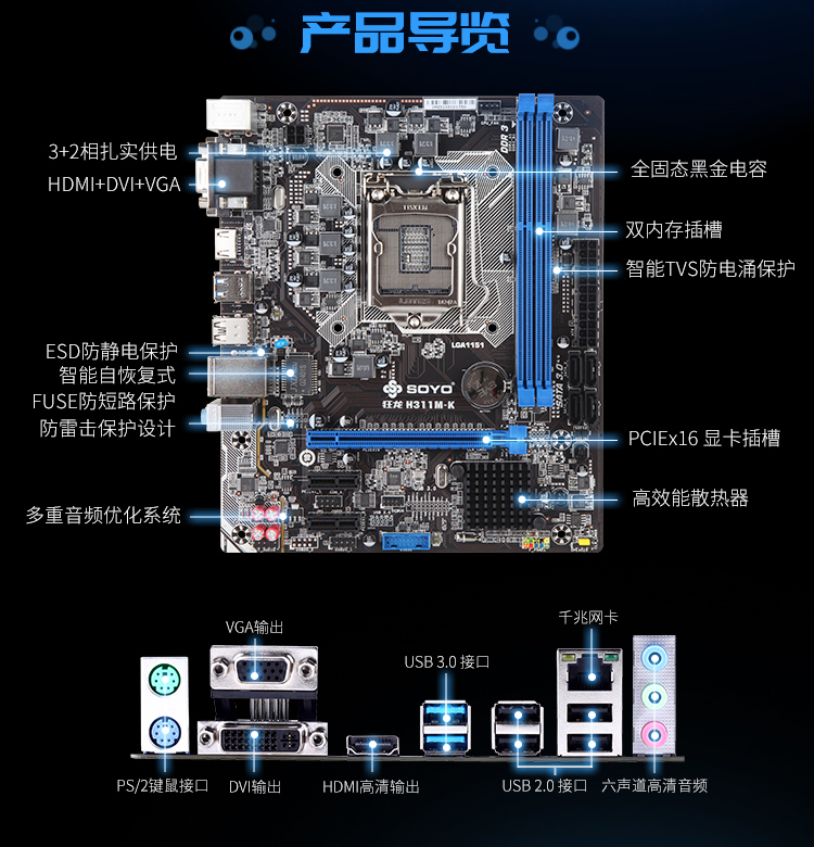 扎實供電,DDR3內(nèi)存,音頻分割線,音頻電容,SATA3.0,USB3.0