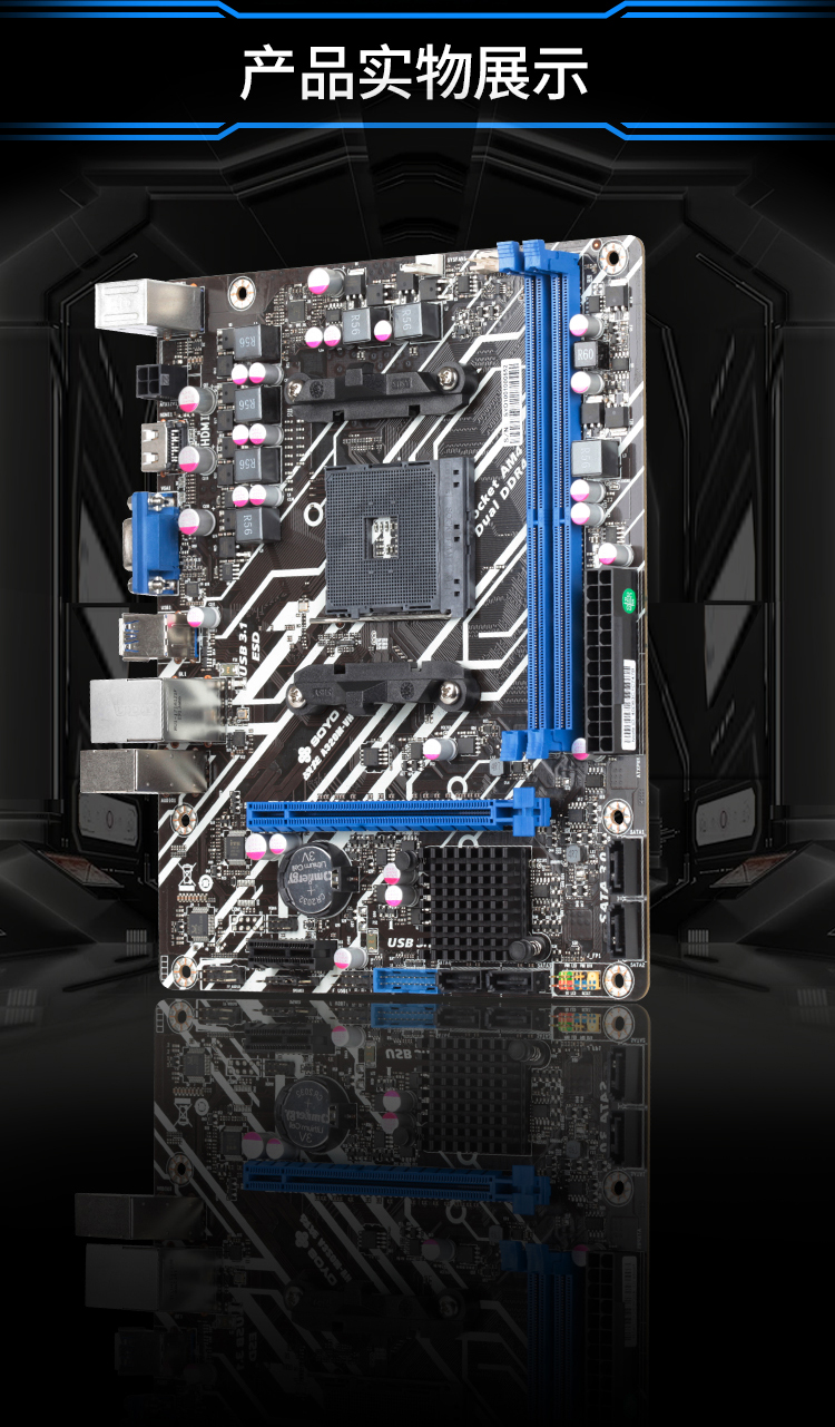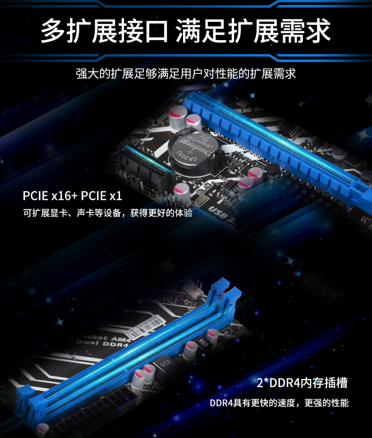 1顯卡插槽,2條DDR4內(nèi)存槽,五相供電