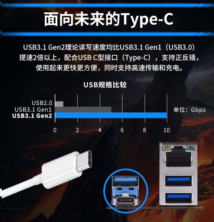 此外,主板擴(kuò)展性十足,滿足用戶對性能的擴(kuò)展需求。雙通道DDR4內(nèi)存插槽,帶來更快的速度和更加強(qiáng)悍的性能。VGA+DVI+HDMI三個(gè)視頻輸出接口,滿足玩家的各種顯示需求。同時(shí)配有USB3.1 Gen2 Type-C接口,實(shí)用方便。Type-C接口的加入進(jìn)一步提高了擴(kuò)展性,目前很多主流的設(shè)備都已經(jīng)采用了這個(gè)“C”型接口。