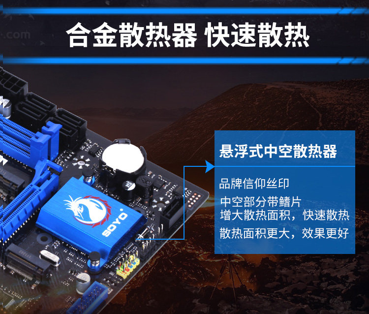 南橋采用懸浮式的中空合金散熱器,增大散熱面積,快速散熱,效果更好。梅捷每一款產(chǎn)品出廠(chǎng)之前經(jīng)過(guò)嚴(yán)格的出廠(chǎng)測(cè)試,保證穩(wěn)定的產(chǎn)品質(zhì)量,讓你的體驗(yàn)更加出色優(yōu)秀。