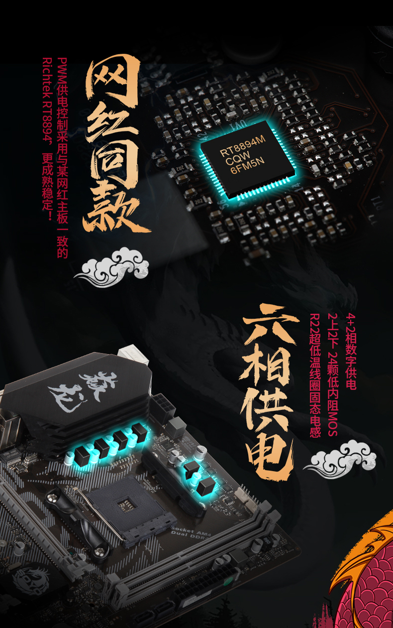 支持超頻,PCIE 4.0 M.2高速接口,顯卡插槽,2條DDR4內(nèi)存槽,六相供電
