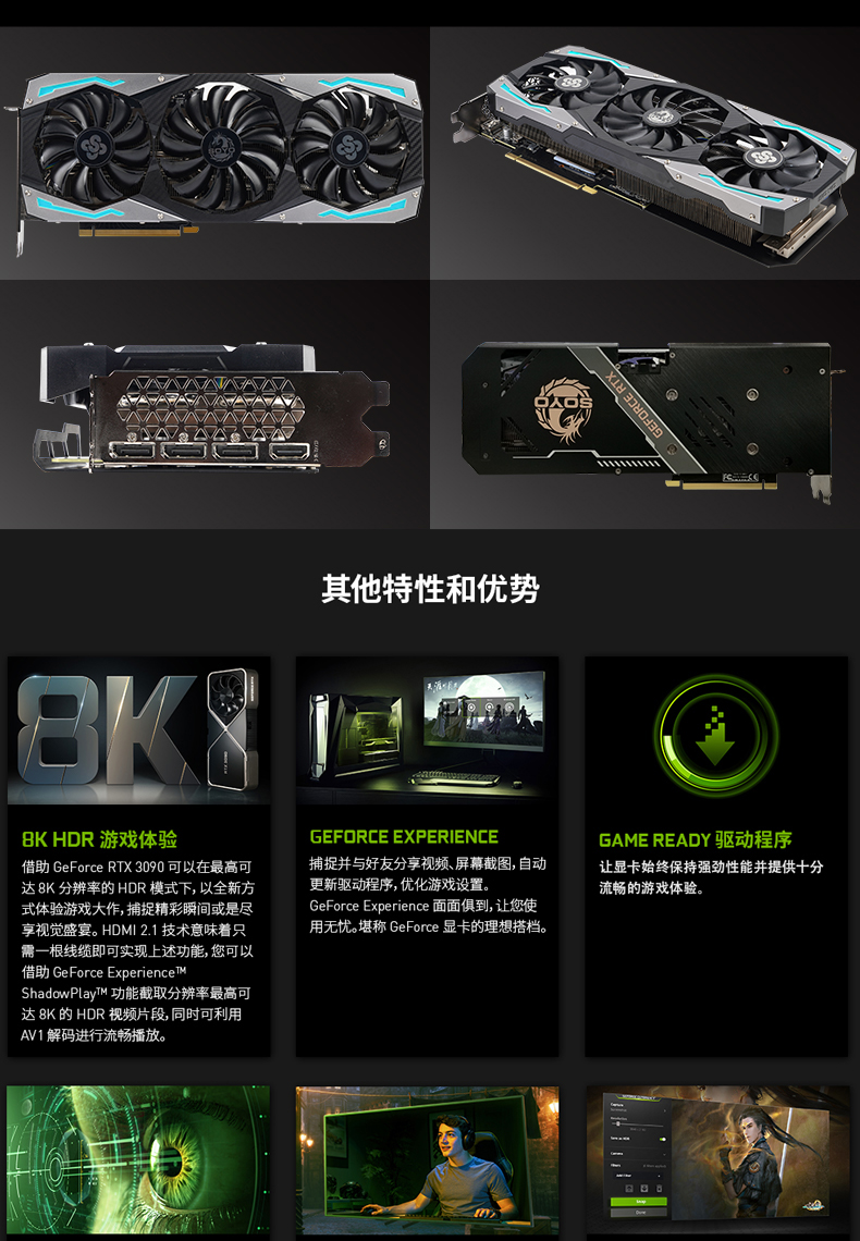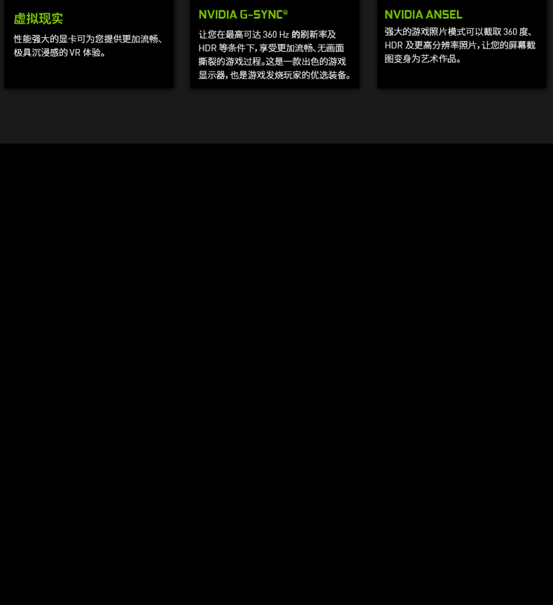 - 支持Simultaneous Multi-ProjectionVR圖像矯正技術,VRWorks Audio虛擬現實音頻技術,Ansel截圖功能,PhysX物理加速技術,NVIDIA CUDA,NVIDIA REFLEX,PureVideo HD高清硬件解碼,動態(tài)超級分辨率,MFAA,GeForce 3D Vision,GameWorks™,G-Sync™-Ready,GameStream™-Ready,GeForce ShadowPlay™,GPU Boost™