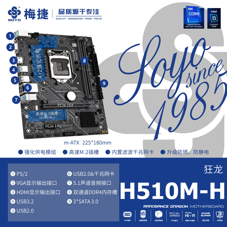 - 2×USB3.2 Gen1;4×USB2.0接口