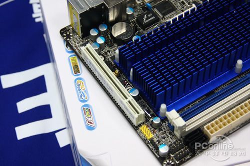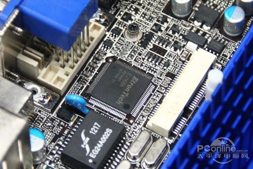 由于主板采用ITX系類規(guī)格設(shè)計,因此在擴(kuò)展接口方面僅僅有1個PCI插槽和2個SATA插槽。