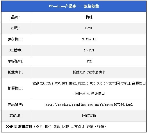面對AMD的E350一體化的攻勢,Intel也不甘示弱, Cedar Trail系列D2500/D2700讓Intel挽回一些一體化的市場份額,但目前市面上在售的D2500/D2700屈指可數(shù)。近日,筆者獲悉,梅捷推出的ITX系列的D2700最新到貨賣場,這款產(chǎn)品采用17*17cm ITX規(guī)格設(shè)計,非常符合高清,一體機(jī)等特殊人群的需求。
