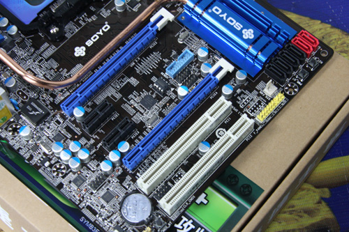 擴(kuò)展方面,提供了2個(gè)PCI-E顯卡插槽,支持混合交火技術(shù)以及雙卡交火模式。另外提供了2個(gè)PCI-E x1插槽以及2個(gè)PCI插槽。存儲(chǔ)部分,提供6個(gè)SATA3設(shè)備和前置USB 3.0接口的支持,并同時(shí)支持RAID技術(shù)。